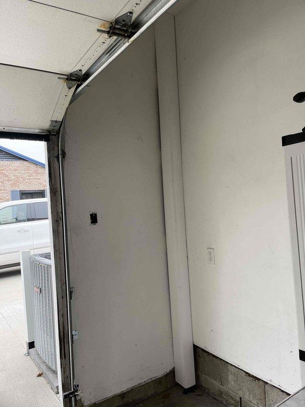 Assisted inspector with access to upper level for inspection via provided ladder. Protected exposed lineset in garage as required by inspector. Documented condition of HVAC unit placement adjacent to garage opening and existing electrical connections with photos.