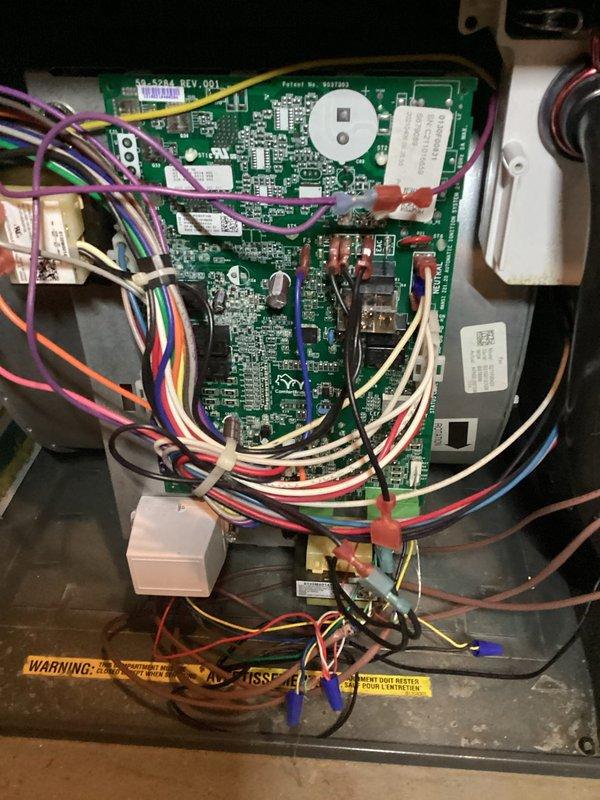 Responded to no-heat call for 4-year-old furnace not turning on. Upon inspection, found faulty control board with visible damage to electronic components. Replaced main circuit board, reconnected all wiring harnesses according to manufacturer specifications, and verified proper system operation through complete heating cycle test.