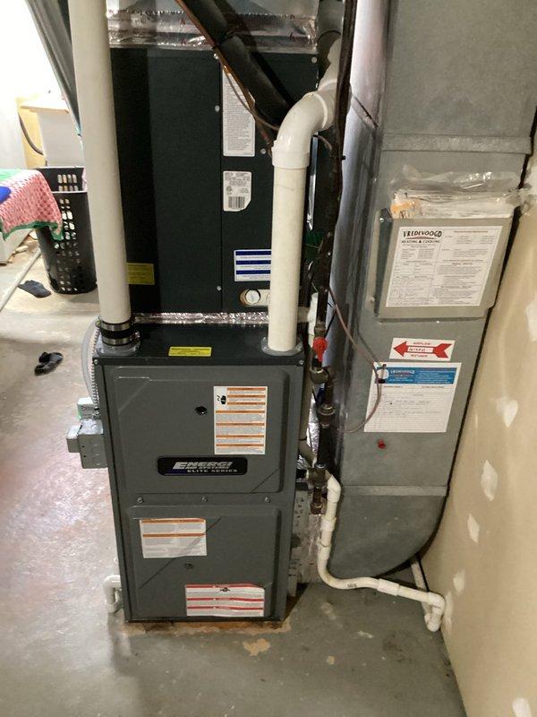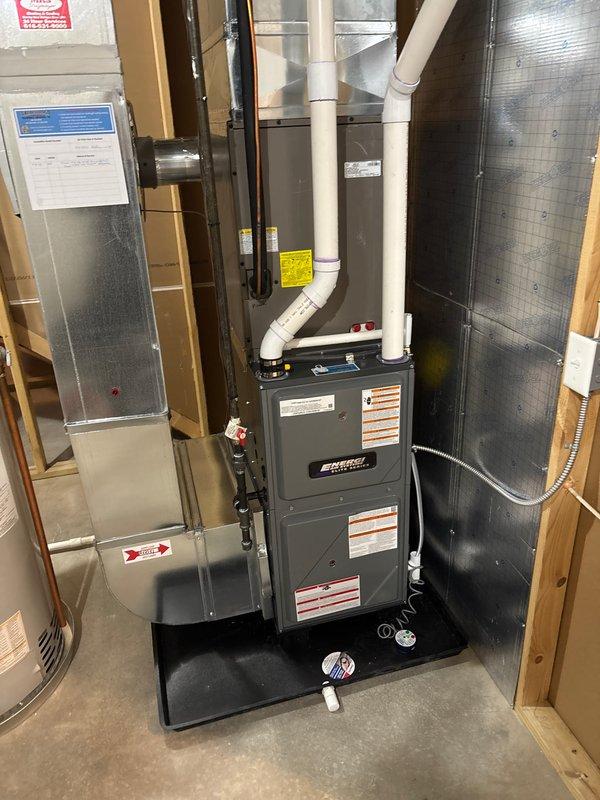 Successfully completed furnace installation in basement utility area. Installed new residential HVAC unit with proper PVC venting, condensate drainage system, and connection to existing ductwork. System was tested and verified to be functioning correctly.