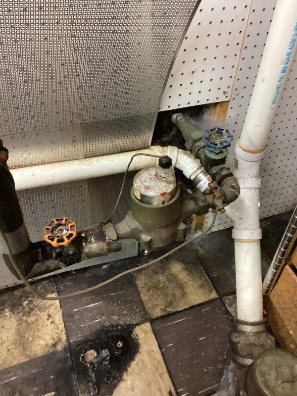 Responded to a slow leak on the house side of the water meter that had been ongoing for approximately two years in a 78-year-old home. Inspection revealed water staining on floor tiles near the meter installation area with aging metal pipes showing signs of minor corrosion at connection points. Repaired the compromised section of plumbing with appropriate fittings to resolve the persistent leak issue.