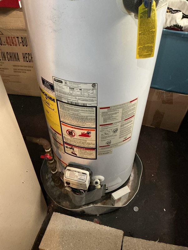 Performed inspection of a 2009 40-gallon gas water heater with recurring pilot light failure issues. Examined the existing ventilation system, which includes galvanized steel ductwork, flexible stainless steel water lines, and brass fittings. Provided customer with replacement options for complete tank installation and removal of the aging unit.