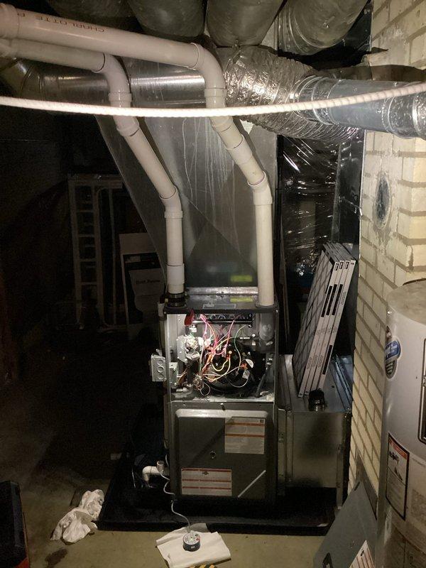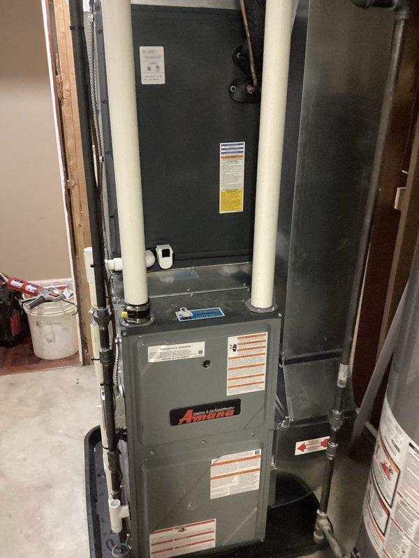 Successfully installed new Amana furnace in basement location, including proper connection of intake and exhaust PVC venting. Ensured secure mounting on concrete floor, completed all necessary ductwork connections, and verified system operation before completing service.