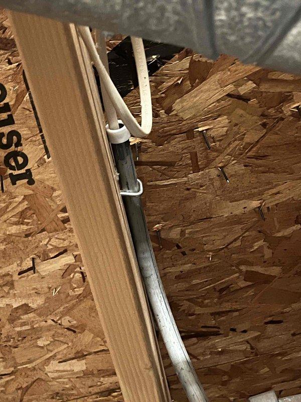 Responded to inspector correction requiring protection at the end of conduit at ceiling. Installed protective bushings on exposed conduit ends and secured metal conduit to OSB sheathing with appropriate fasteners to complete the 80% furnace installation approval requirement.
