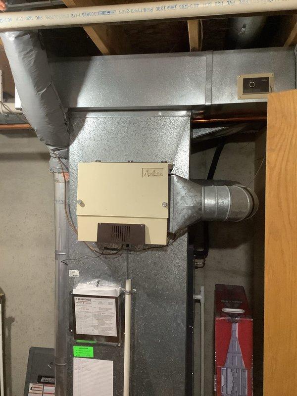 Performed annual heating system maintenance on EnergiAir furnace (2014 model) with attached humidifier. Inspection revealed significant mineral buildup and moisture accumulation in the drain pan. Cleaned condensate collection system, checked copper line connections, and restored proper drainage function to prevent potential water damage and ensure efficient system operation.