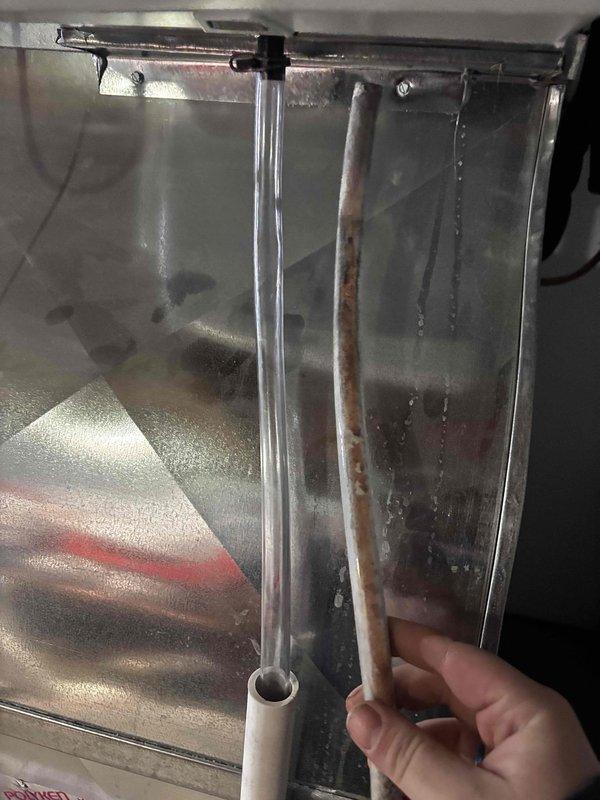Conducted a comprehensive water heater replacement estimate at a 50+ year old residential property, examining the existing ventilation system which showed signs of deterioration and moisture damage at the connection point with the concrete block wall. Also provided consultation on drinking water filtration system options per customer's request.