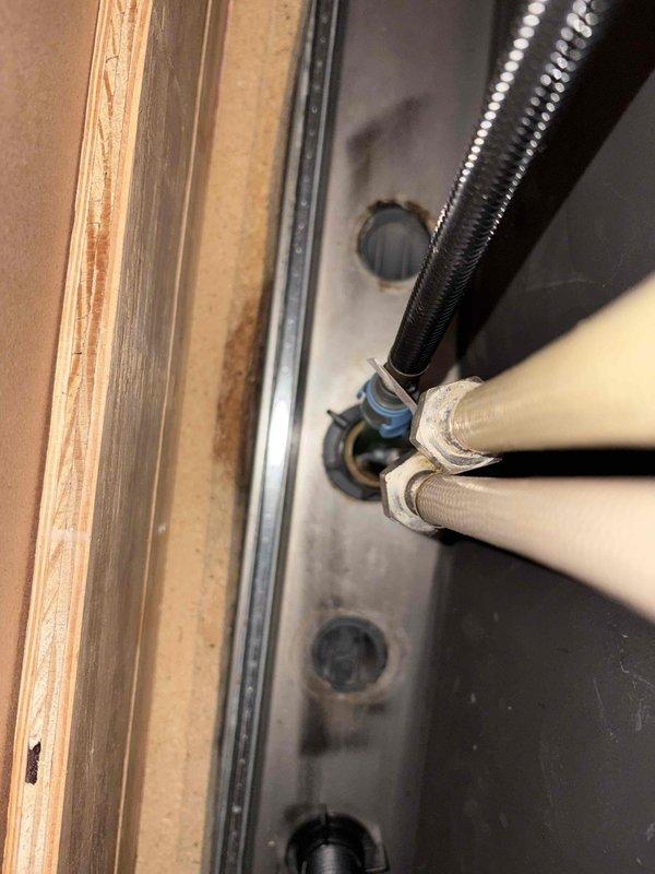 Completed repair of active leak where copper supply line penetrated wooden framing, which had caused significant water damage and wood deterioration. Replaced damaged kitchen faucet and installed new P-trap assembly to resolve drainage issues in the plumbing system. Provided consultation regarding potential gas line modifications as requested.