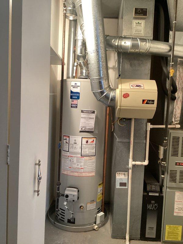 Successfully installed a 50-gallon natural gas water heater in the customer's basement utility area, including proper venting with metal exhaust ducting to the wall. Completed all necessary plumbing connections with copper supply lines and PVC drainage, ensuring all valves and safety features were properly installed and operational.