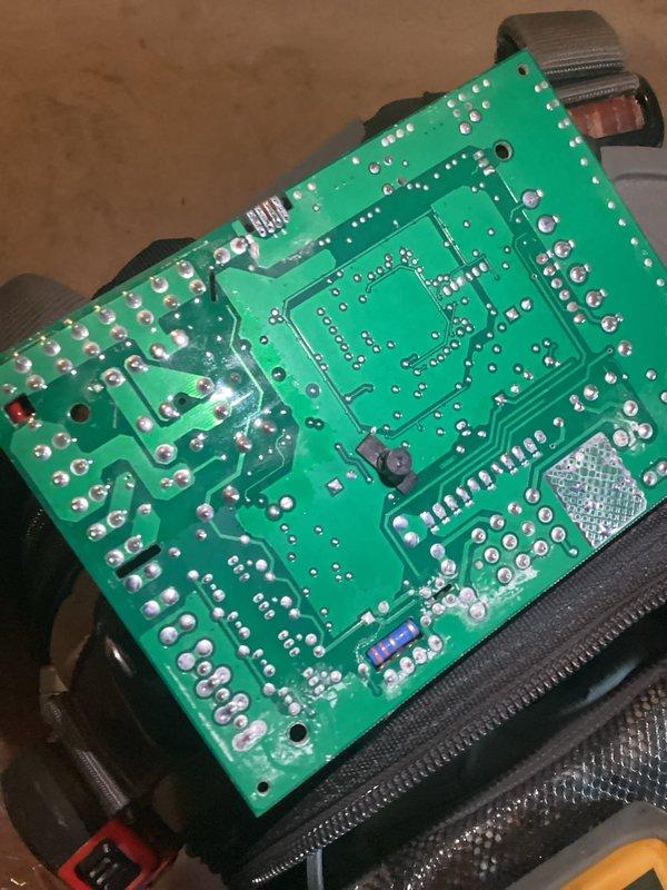 Responded to no heat call for 23-year-old furnace with Energi Air system. Diagnosed failed circuit board showing visible damage on PCB. Replaced control board and verified proper operation of heating system before departure.