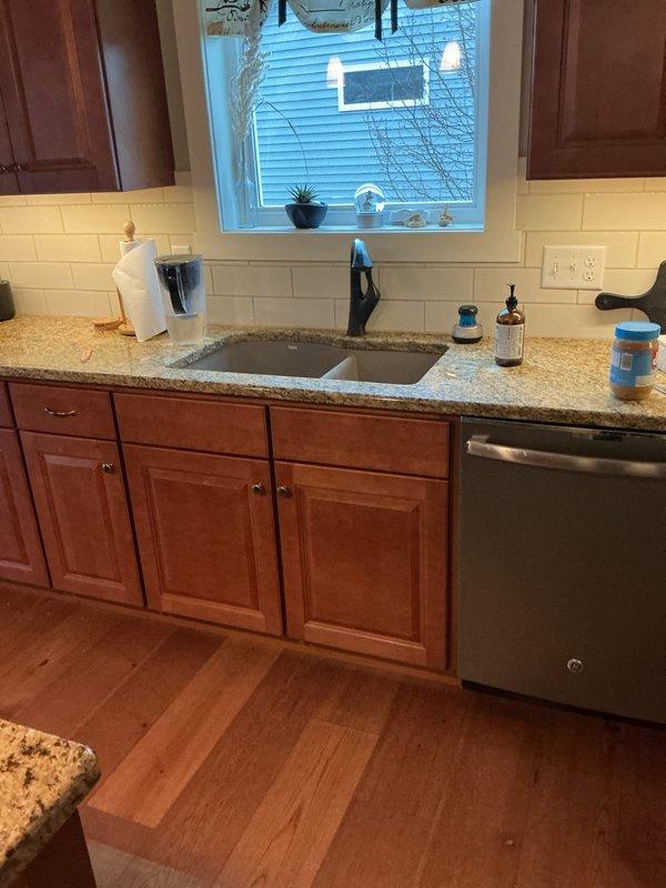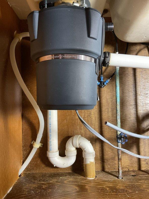 # Job Description Completed QUOTR-quoted repair involving installation of customer-supplied garbage disposal unit and evaluation of kitchen faucet flow. Successfully installed the disposal unit under kitchen sink, connecting it to existing drain assembly with proper P-trap configuration using white PVC drainage piping. Verified secure mounting of disposal with all fasteners properly tightened and disposal motor assembly correctly positioned. Checked kitchen faucet flow rate and confirmed adequate water pressure and drainage performance. All plumbing connections tested for leaks and proper operation. System functioning as intended with no issues detected.