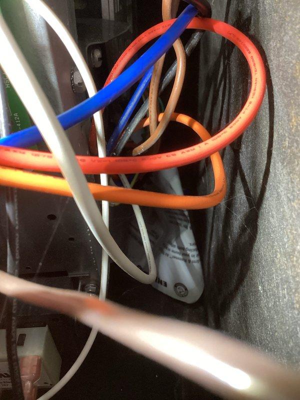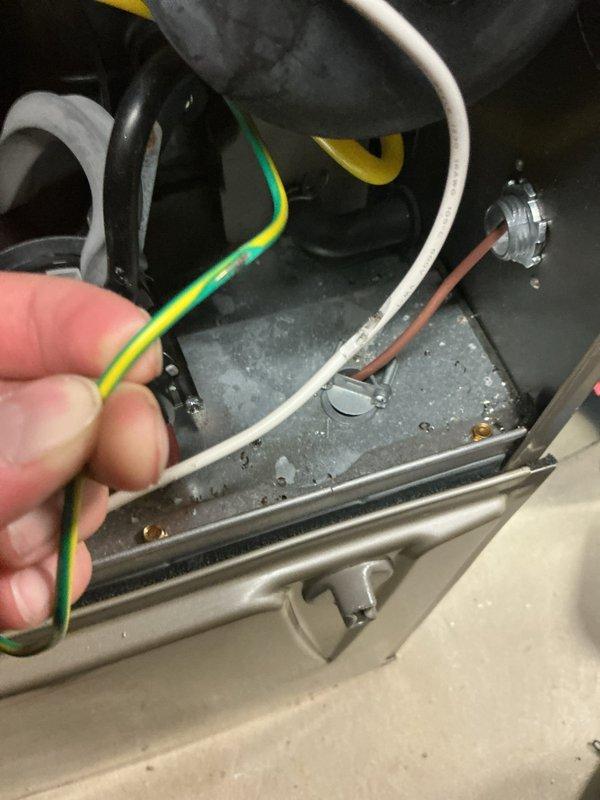 Relocated humidifier unit and associated MC cable in residential mechanical space to optimize system layout and accessibility. Rerouted electrical connections and repositioned equipment while maintaining proper clearances from furnace, ductwork, and gas lines in basement utility area.