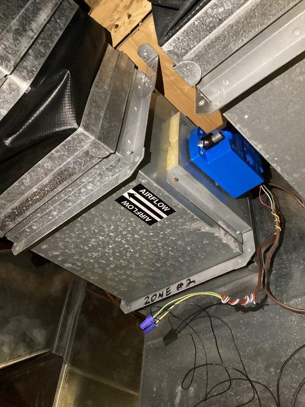 Completed zone motor replacement on HVAC system as quoted. Accessed air handler in attic space, disconnected existing wiring from faulty zone motor (Zone A2), and installed new replacement motor. Verified proper airflow and system operation after installation.
