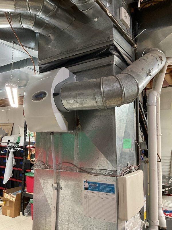 Successfully installed a new manual humidifier system on the existing furnace unit. Properly connected the unit to the ductwork and completed all necessary connections including condensate drainage. System was tested and confirmed to be functioning as designed.