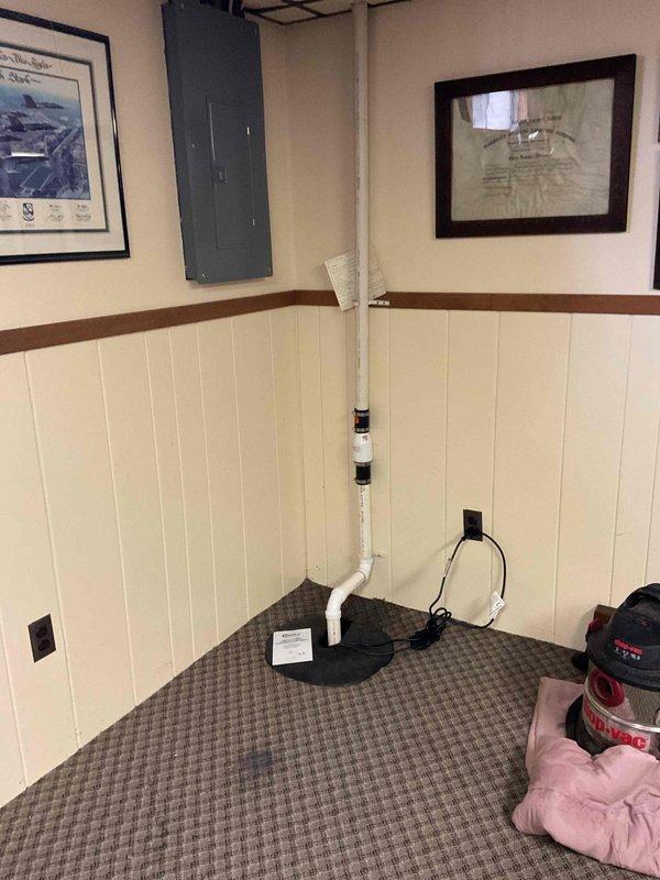 Conducted site assessment to provide estimate for sump pump replacement. Inspected existing system in finished basement area, including drainage configuration and electrical connections. Documented current installation with photographs to develop comprehensive replacement proposal.