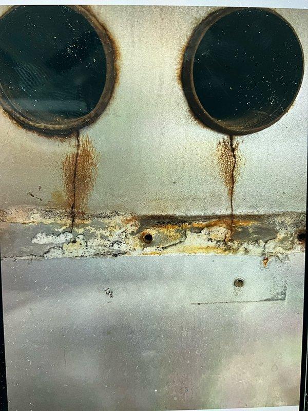 Responded to no-heat complaint on 16-year-old furnace system. Inspection revealed severe corrosion and rust on heat exchanger with visible deterioration around ports. Determined heat exchanger failure requires full system replacement due to safety concerns and age of equipment.