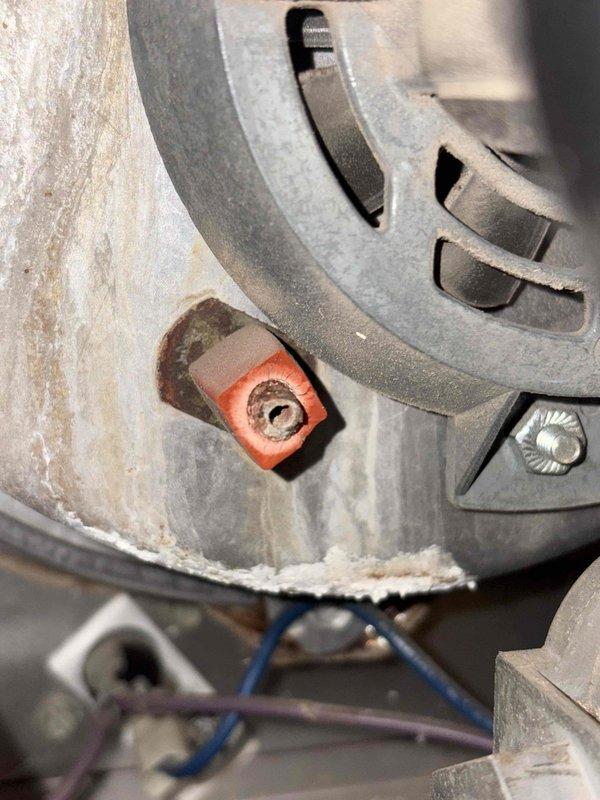 Performed annual heating service on 23-year-old Nordyne furnace. Identified circuit board damage with evidence of overheating/burn marks around multiple resistors and diodes. Also noted significant deterioration of insulation on ducting with visible rust and corrosion. Documented issues with photos for reference.