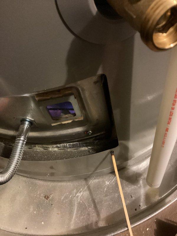 Responded to service call for water heater pilot light failure following furnace installation. Inspected 4-year-old Rheem water heater and found gas supply was interrupted during furnace work. Successfully relit pilot light and verified proper flame pattern and operation of water heater.