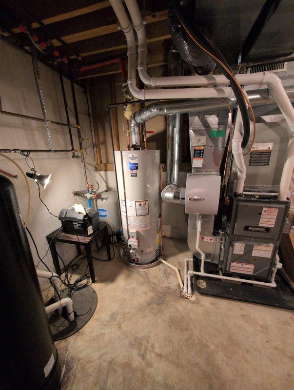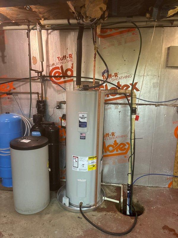 Successfully completed installation of new water heater in basement utility room, replacing existing unit. System was properly connected to existing PVC piping network and tested for proper operation. All warning labels and safety features were verified functional before completion.