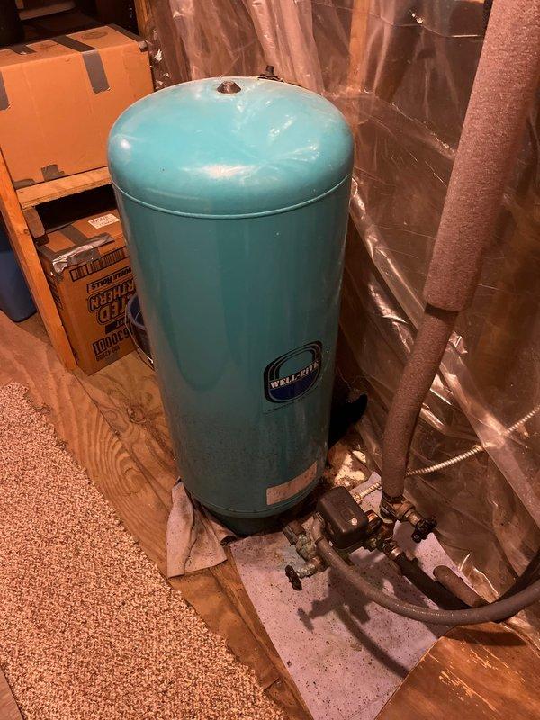 Completed full-day plumbing project installation including replacement of water pressure tank with new unit, complete with pressure switch, tee fittings, and brass valve assembly with integrated pressure gauge. Installed all new copper piping connections with proper brass fittings and shut-off valves to ensure system integrity. Mounted pressure tank on stable platform in basement utility area with proper clearances for maintenance access. Installed customer-supplied kitchen faucet with connections to existing water supply lines, ensuring proper sealing and flow rates. Replaced shower valve assembly with new fixture, completing all rough-in connections and testing for leaks. All installations tested and verified operational. System pressurized and checked for proper pressure regulation. Work completed with cleanup of workspace.